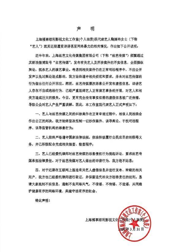 她直接指控丝芭传媒是居心操控舆情,拿伪善音信抹黑她,即是念毁掉她的演艺奇迹,属于职场打压。