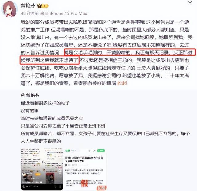 前同事曾艳芬说,当年丝芭为了融资上市,会铺排旗下女艺人去陪老板饮酒,不是大凡的用饭酬酢。